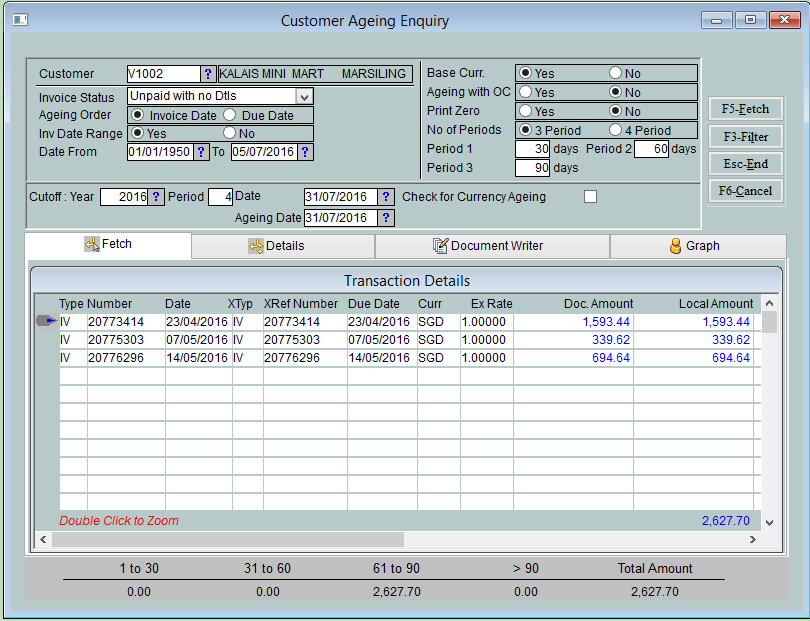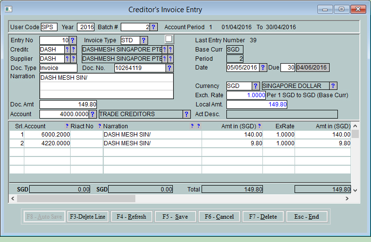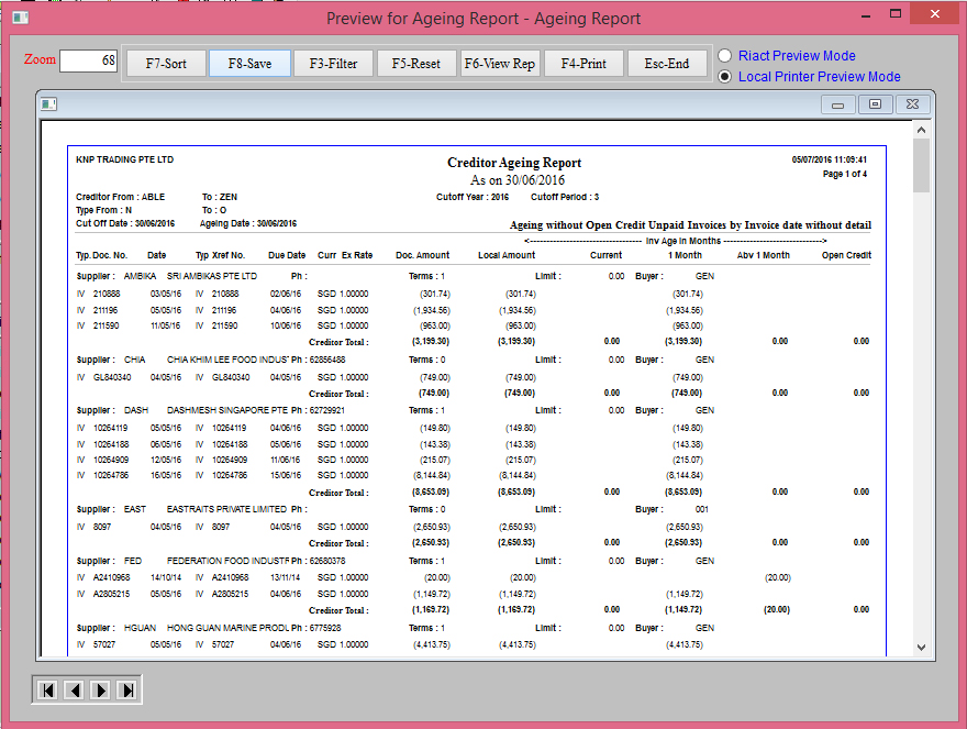 • Reports such as Creditor Aging, Creditors Overdue Payables (useful for tracking T/R payments), Creditor Ledger and much more